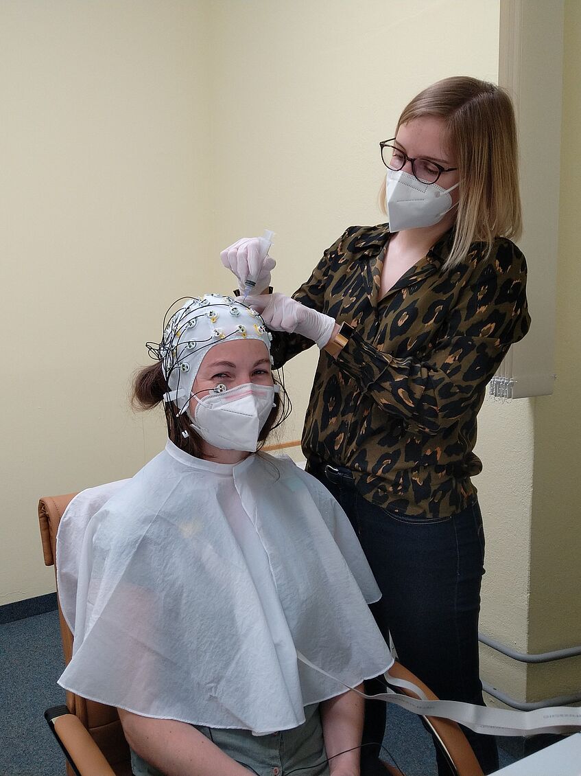 Das Experiment wird von Juliane Schwab unter der Leitung von Univ.-Prof.in Jutta Mueller durchgeführt. Ihre Aufgabe bei der Studie ist es, deutsche Sätze zu lesen während mittels EEG die dabei auftretende Gehirnaktivität aufgezeichnet wird. Die EEG Messung dauert etwa 30 Minuten, Vorbereitung, Fragebögen und Nachbereitung nehmen in etwa 2 Stunden in Anspruch. Die Testung findet zwei Mal im Abstand von mindestens 5 Tagen statt.